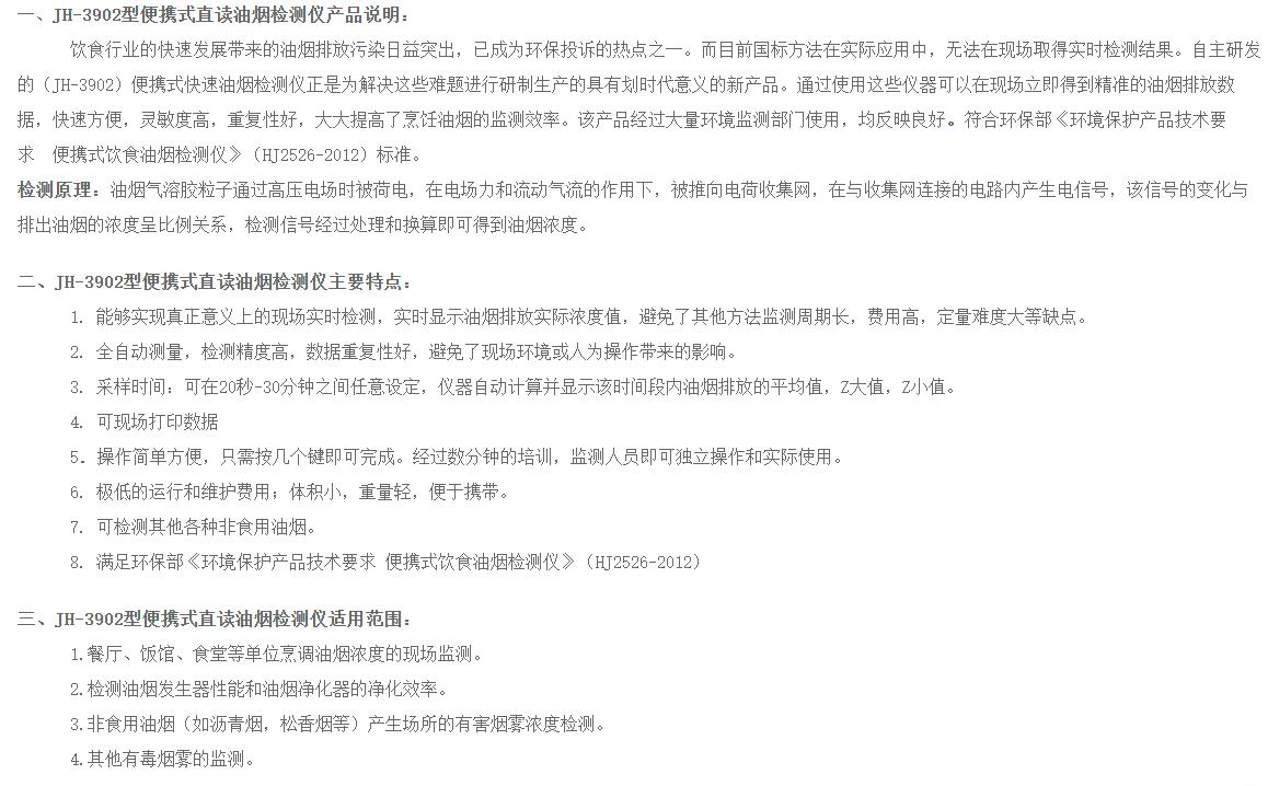 商品名称:JH-3902型便携式直读油烟检测仪