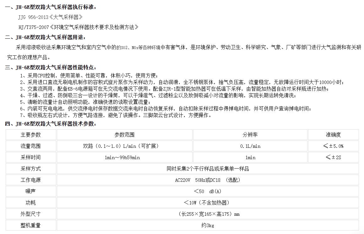 商品名称:JH-6E型双路大气采样器